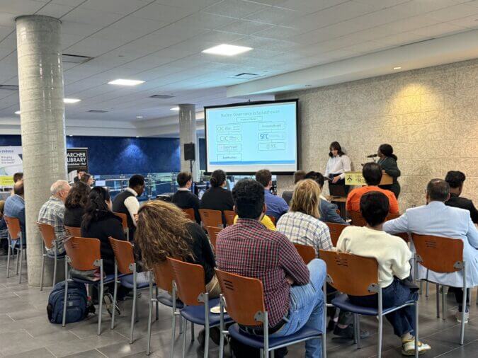 After a morning full of insights, attendees enjoyed a lunch session with representatives from CNL, University of Regina management, and the NAYGN team, giving everyone the chance to connect, discuss research collaboration, and reflect on the morning’s sessions in a relaxed setting. The afternoon continued with an engaging presentation from Gina Strati of CNL, who introduced ongoing bio and chemical research projects that explore how biological and chemical processes intersect with nuclear science. She also offered a valuable perspective on cybersecurity within nuclear operations, emphasizing the importance of protecting digital infrastructure as nuclear technology continues to evolve. On the Saskatchewan front, attendees heard from Arthur Situm, who delivered a clear and informative Nuclear 101 session for attendees who were new to the field. Crown Investments Corporation of Saskatchewan, represented by Abby Ojo and Breann Whitby, shared updates on current projects and provided insight into how investment and policy support nuclear development within the province. From SaskPower, Travis Sandeski and Sarah Klein Bentley presented on the siting and engagement process for Small Modular Reactors (SMRs) in Elbow and Estevan, explaining how regulatory approvals, community input, and environmental assessments guide these critical decisions. The event also welcomed participation from University of Saskatchewan students, Saskatchewan Polytechnic researchers, and professionals from various industries, creating a diverse and collaborative audience. By the end of the day, it was clear that everyone walked away with a deeper understanding of nuclear science and a stronger sense of purpose toward advancing Canada’s clean energy future.